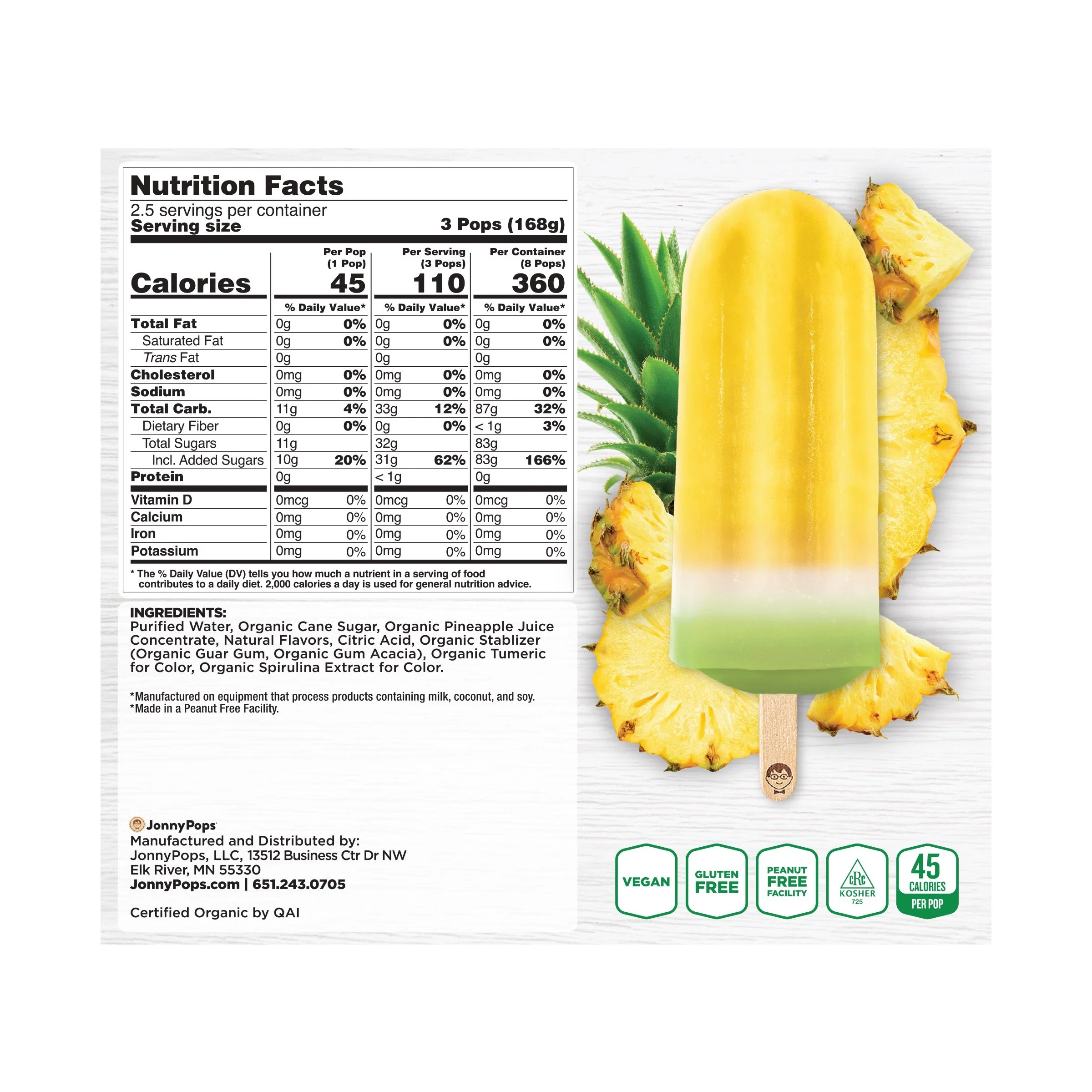 Purified Water, Organic Cane Sugar, Organic Pineapple Juice Concentrate, Natural Flavors, Citric Acid, Organic Stabilizer (Organic Guar Gum, Organic Gum Acacia), Organic Tumeric for Color, Organic Spirulina Extract for Color.